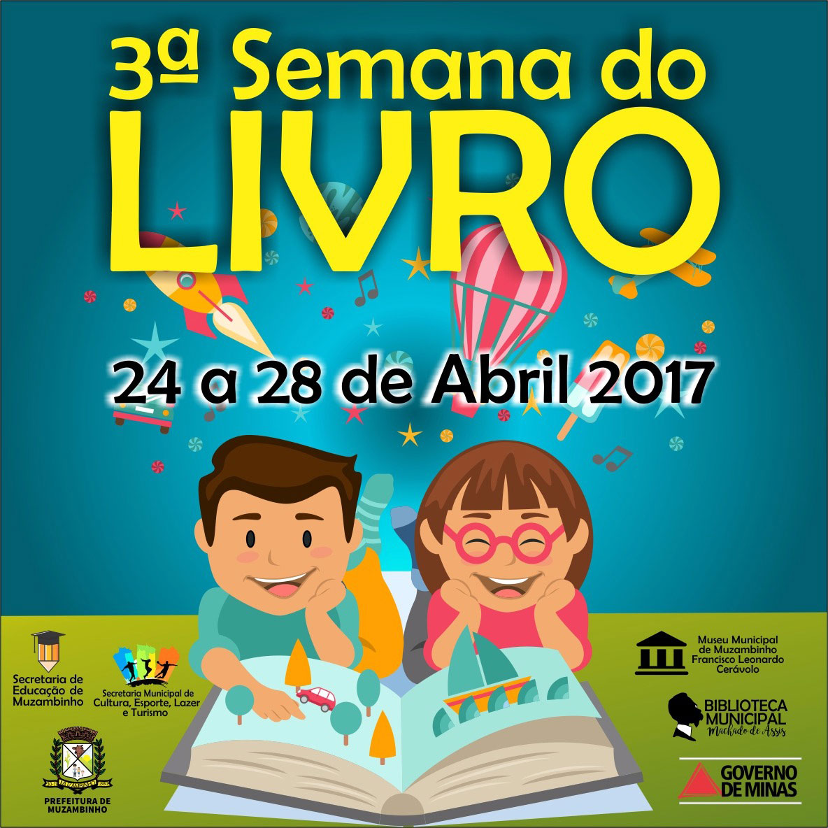 A Secretaria de Educação, Secretaria de Esportes, Lazer, Cultura e Turismo e Setor do Patrimônios Histórico, Artístico e Cultural da Prefeitura de Muzambinho convida para participar da ‘III Semana do Livro’ que ocorrerá entre os dias 24 e 28 de abril de 2017 das 08h às 17h. O evento será realizado na Casa da Cultura Dr. Lycurgo Leite, situada à Rua Tiradentes, 264, Centro, Muzambinho/MG.