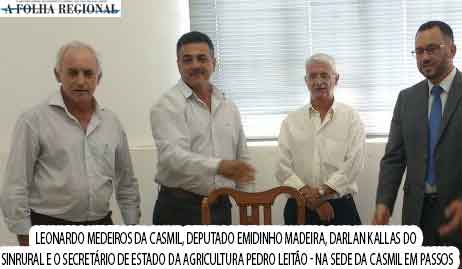 Na quarta-feira (16), logo após a solenidade de abertura da Expass/Sinagro 2017, em Passos, o deputado Emidinho Madeira, que tem se tornado uma das expressões políticas mais importantes da região pelo seu caráter conciliador, fez questão de convidar o atual Secretário de Estado de Agricultura de Minas Gerais, Pedro Leitão, para conhecer a sede da Casmil – Cooperativa Agropecuária do Sudoeste de Minas, sediada em Passos e que possui abrangência regional.
