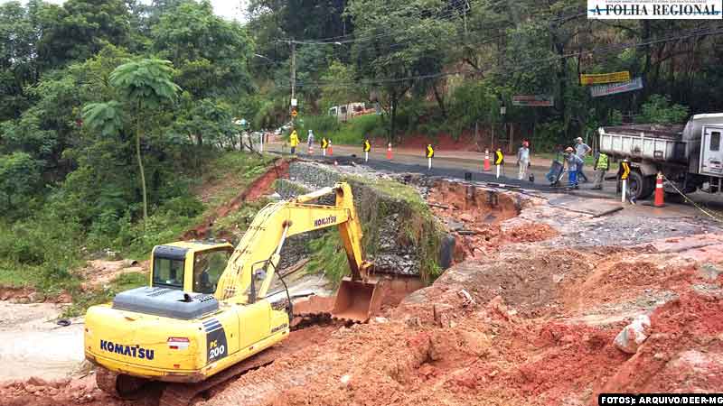 Equipes estão mobilizadas para restabelecer o trecho da rodovia, danificado pelas chuvas nos últimos dias