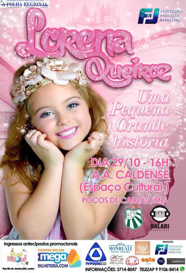 O show “Uma pequena grande história”, da atriz Lorena Queiroz, que interpreta a “Carinha de Anjo” no SBT, acontece neste domingo (29), às 16h, na Associação Atlética Caldense.