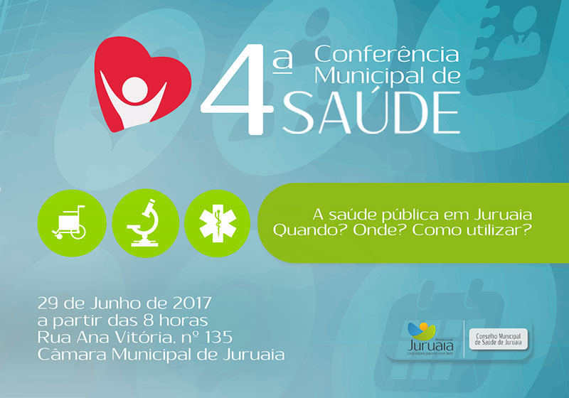 Nesta quinta-feira, dia 29 de junho, a partir das 8 horas, será realizada a IV Conferência Municipal de Saúde com o tema “A saúde pública de Juruaia. Quando? Onde? Como utilizar?”. O evento acontecerá na Câmara Municipal de Juruaia, situada na Rua Ana Vitória, nº 135.