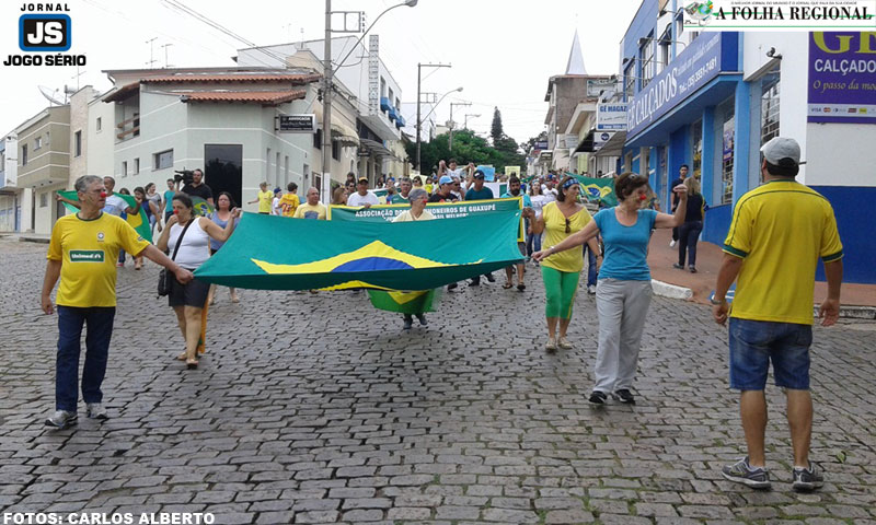 Cerca de duzentas pessoas (segundo a Polícia Militar) participaram do movimento “Vem Pra Rua Guaxupé!”, promovido por representantes de entidades de classes, empresários e operários, como parte da “Macha contra a Corrupção”, que ocorreu em diferentes pontos do Brasil e do mundo, no domingo, 15 de março.