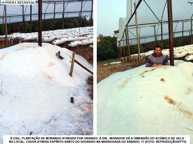 Em São João da Mata, moradores da zona rural ficam sem energia elétrica. Em Espírito Santo do Dourado, plantação de morango ficou coberta de gelo.