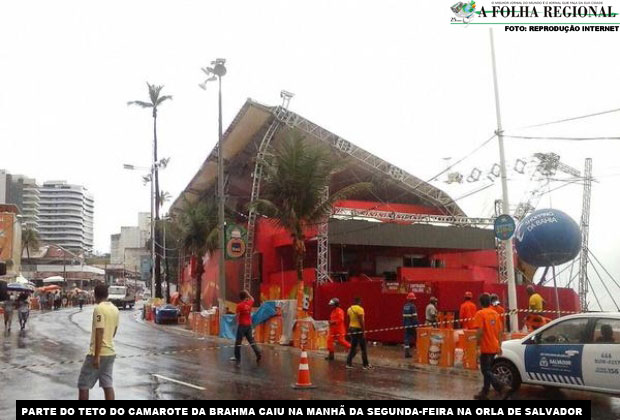 Empresa pode ter um prejuízo de até 2 milhões de reais, queda da estrutura não deixou feridos. As fortes chuvas que atingiram Salvador no início da manhã da segunda-feira (16) resultaram no rompimento da cobertura do Camarote Brahma, que fica no circuito Barra-Ondina.
