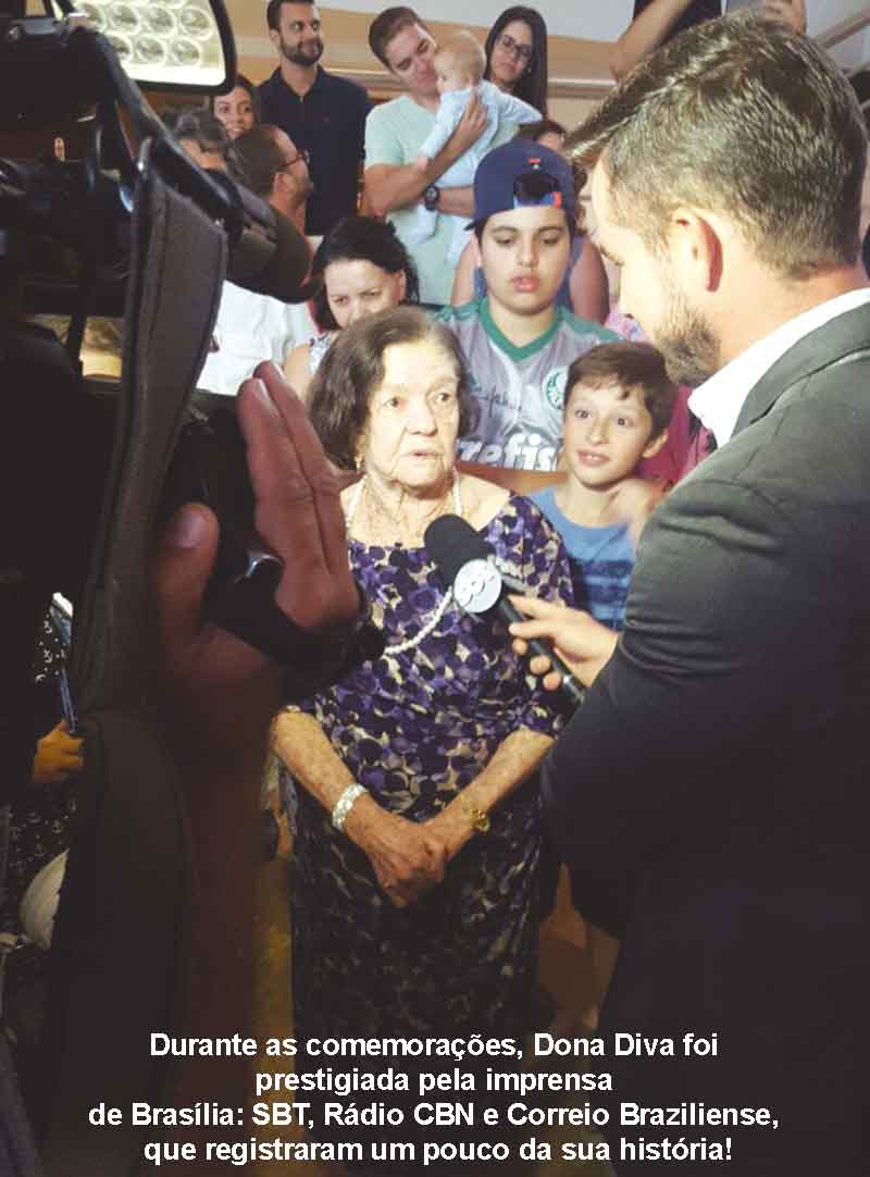 Seus filhos: Ozias, Joel, Hermínia, Ismael, Ester, Elizabete, Samuel, Natanael, Isaías e Eliza, genros, noras, netos e bisnetos, comemoraram com alegria e gratidão a Deus os 100 ANOS da matriarca Dona Diva.
