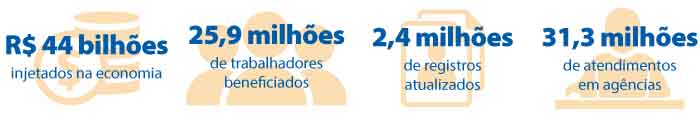 O número inicial estimado de trabalhadores beneficiados pela medida era de 30,2 milhões. Esse número subiu para 32,7 milhões em razão dos cerca de 2,5 milhões de acertos cadastrais realizados nas agências da CAIXA durante todo o período de atendimento. Em relação à base atualizada, mais de 79% de trabalhadores realizaram o saque.