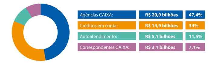 A Caixa Econômica Federal realizou o pagamento de mais de R$ 44 bilhões relativos às contas inativas do Fundo de Garantia do Tempo de Serviço (FGTS). A Lei 13.446/2017 que permitia o saque das contas inativas, de 10 de março até o dia 31 de julho, beneficiou mais de 25,9 milhões de trabalhadores.