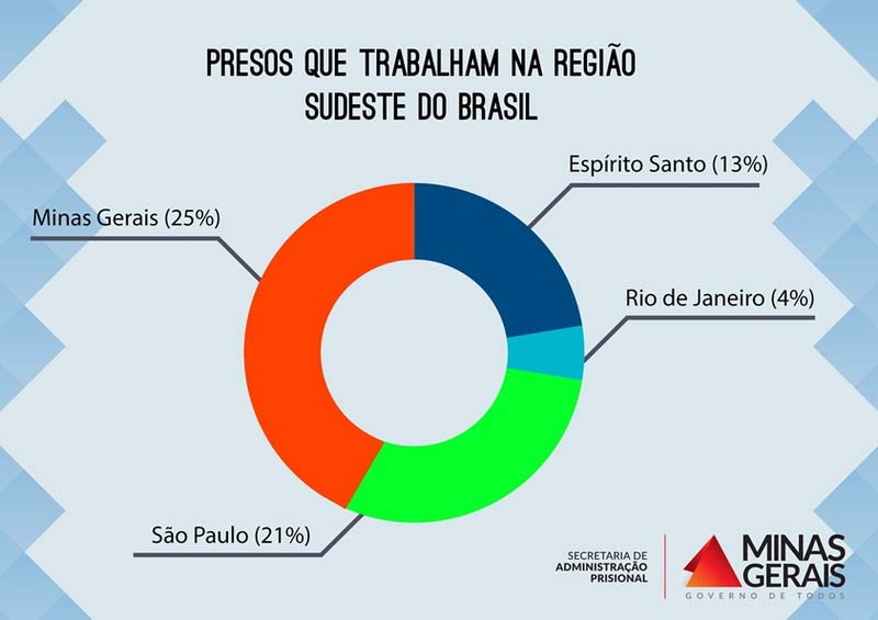 Com 67.159 presos, Minas Gerais tem hoje 17.088 detentos que trabalham, ou seja, 25% da população carcerária. Em comparação com os outros estados da região Sudeste do Brasil, Minas sai na frente, enquanto São Paulo tem 21%; Espírito Santo, 13% e Rio de Janeiro, 4%.
