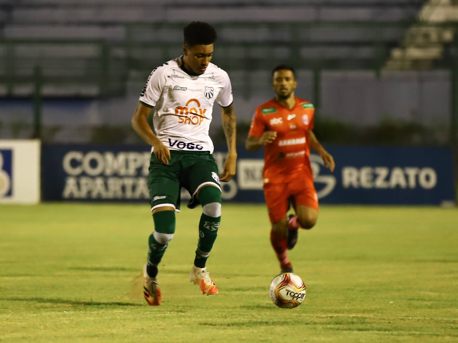 21, surgiu a melhor chance alviverde na partida. Igor Gomes bateu mascado