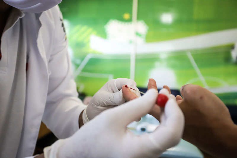 O protocolo da Federação Mineira de Futebol diz que os clubes devem fazer exames para COVID-19 48 horas antes de cada partida do Campeonato Mineiro. Como a Caldense joga contra o Tupynambás neste domingo (26), jogadores, integrantes da comissão técnica, membros da diretoria e outros funcionários da Veterana foram submetidos na manhã da última sexta-feira (24) ao teste RT-PCR, específico para detectar a presença do novo coronavírus.