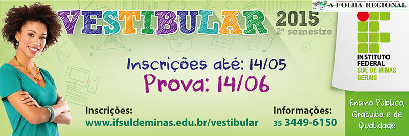 Será realizado, no dia 14 de junho (domingo), no período de 13 às 17 horas, o vestibular 2015/02 do IFSULDEMINAS – Câmpus Muzambinho.