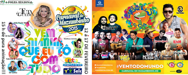 Muzambinho terá carnaval à tarde, à noite e até amanhecer. Com uma programação diferenciada para atender todos os públicos e gostos. Durante os eventos turistas, muzambinhenses, crianças, jovens, adultos e melhor idade terão diversão ao seu estilo e ambiente.