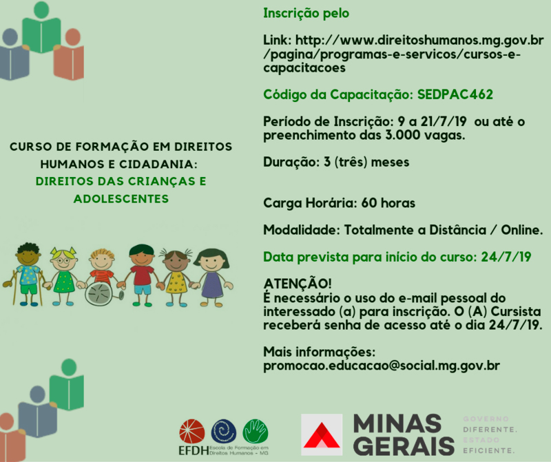 Governo de Minas abre inscrições para curso sobre direitos das crianças e adolescentes