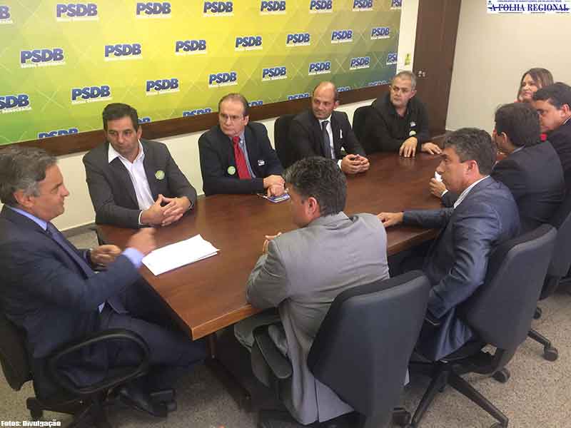 O senador Aécio Neves reuniu-se, na terça-feira (21/11), em Brasília, com um grupo de prefeitos de Minas Gerais que participam da Marcha de Prefeitos, organizada pela Confederação Nacional dos Municípios.