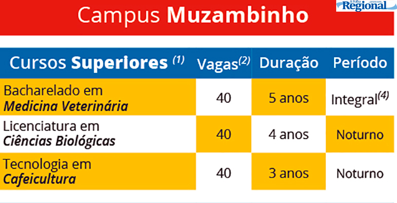 As oportunidades são para 10 cursos oferecidos nos campi Muzambinho, Poços de Caldas e Carmo de Minas