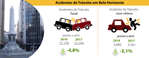 Em Minas Gerais, a redução foi de 9,6%, com a diminuição de 2.652 registros com mortos ou feridos nas estradas e vias públicas