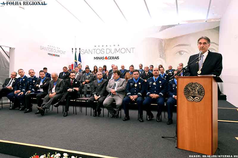 No ano que marca o aniversário de 110 anos do primeiro voo do aviador Santos Dumont, 111 personalidades e uma entidade foram agraciados pelo Governo de Minas, na terça-feira (8/11), na Fazenda Cabangu, município de Santos Dumont.