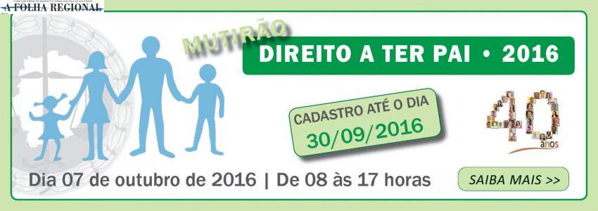 Vai até o dia 30 de setembro o prazo de cadastramento para o “Mutirão Direito a Ter Pai”. A ação é promovida pela Defensoria Pública do Estado de Minas Gerais e tem o objetivo de garantir à criança, ao adolescente e, eventualmente, ao adulto, o direito a ter o nome do pai em seu registro de nascimento.