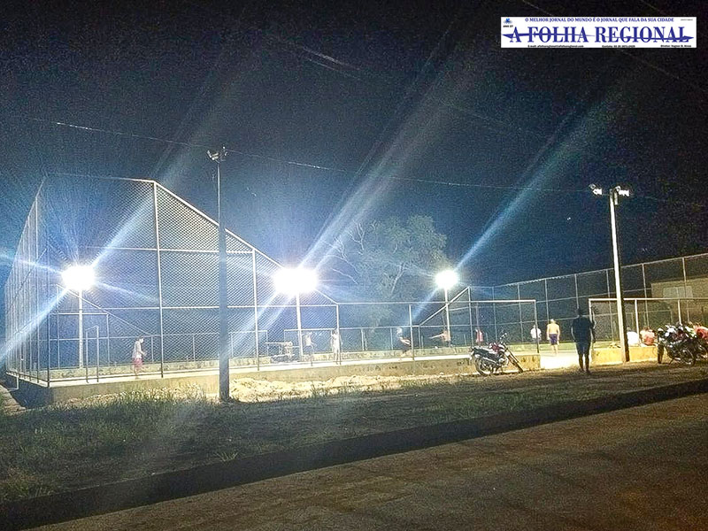 Local de atividades esportivas e recreação para crianças e jovens, a quadra poliesportiva do distrito Mata do Sino recebeu, nessa quarta-feira (6), novos refletores para iluminação do local e utilização do mesmo durante a noite.