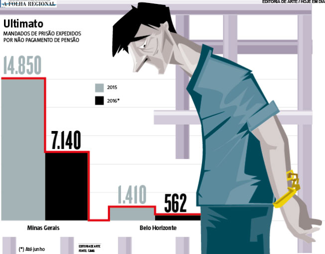 Apenas neste ano, uma média de 40 mandados de prisão foram expedidos diariamente em Minas contra devedores de pensão alimentícia.