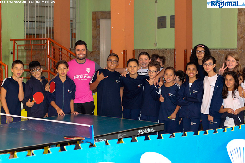 Na tarde de quarta-feira (10), atletas do departamento de tênis de mesa da Caldense, acompanhados do técnico Felippe, fizeram uma apresentação/oficina sobre a modalidade no colégio Nini Mourão.