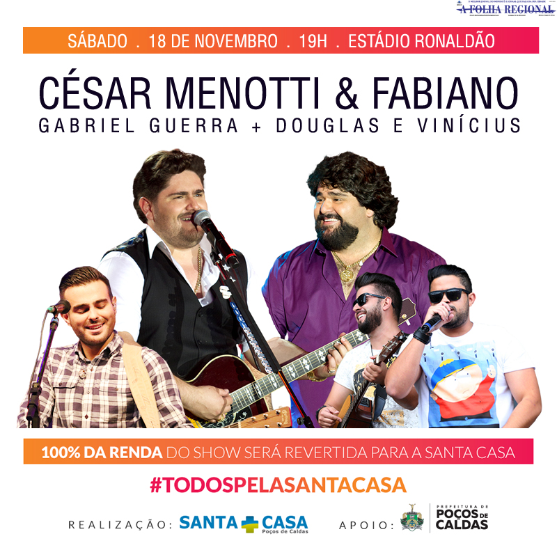 Show “Todos pela Santa Casa” acontece neste sábado (18), e conta com duas novas atrações em Poços