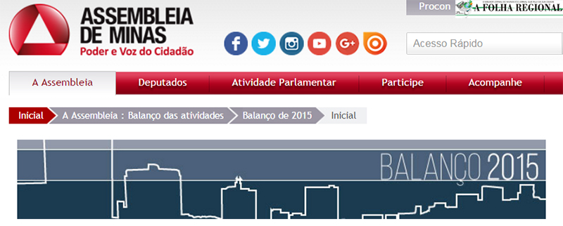 Página com balanço da ALMG em 2015 está disponível no Portal