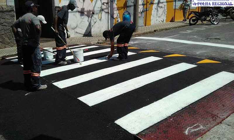 Rua Paraná recebe faixa elevada de pedestres em Poços