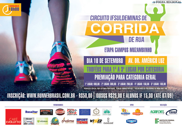 Estão abertas as inscrições, até 07 de setembro, para o Circuito IFSULDEMINAS de Corrida de Rua 2016 - Etapa Campus Muzambinho.