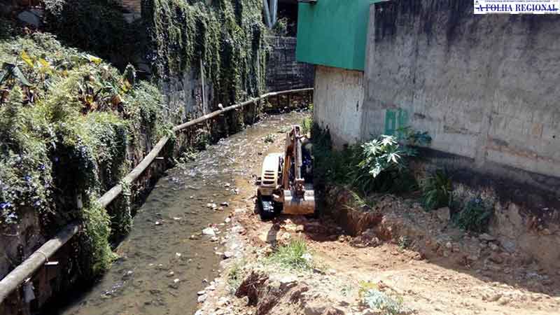 A Prefeitura, por meio da Secretaria Municipal de Projetos e Obras Públicas, está realizando o trabalho de desassoreamento do Córrego Vai e Volta, localizado na área central de Poços.