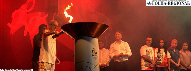 Durante a celebração promovida na Lagoa Grande moradores tiveram a chance de tirar fotos ao lado ou mesmo com a Tocha Olímpica nas mãos