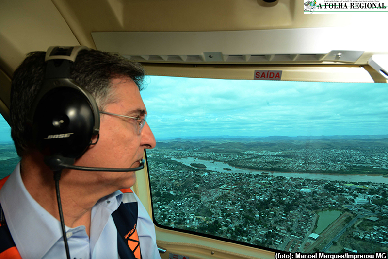 Fernando Pimentel e Dilma Rousseff sobrevoam áreas atingidas por rompimento de barragens