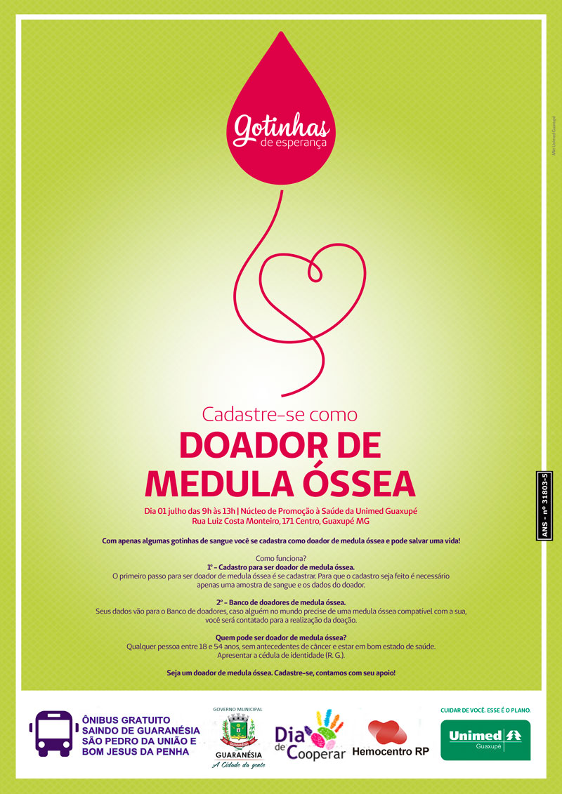 O Hemocentro de Ribeirão Preto virá até a cidade de Guaxupé no próximo dia 01 de julho, entre às 09h00 e 13h00 para a coleta de sangue e cadastro de futuros doadores de medula óssea.