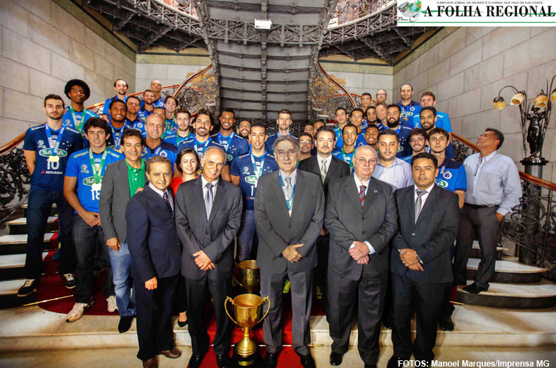 Time mineiro de vôlei sagrou-se tricampeão brasileiro no fim de semana; governador ressaltou trabalho e dedicação como exemplos para o Brasil. O governador Fernando Pimentel recebeu, na quarta-feira (15/4), no Palácio da Liberdade, atletas, comissão técnica e dirigentes do Sada Cruzeiro, tricampeões da Superliga Masculina de vôlei. Pimentel parabenizou os jogadores pelo título conquistado no último domingo (12/4) com a vitória sobre o Sesi-SP, no Mineirinho, em Belo Horizonte. O governador destacou o trabalho realizado pelo Sada Cruzeiro como exemplos, para o Brasil, de seriedade e dedicação.