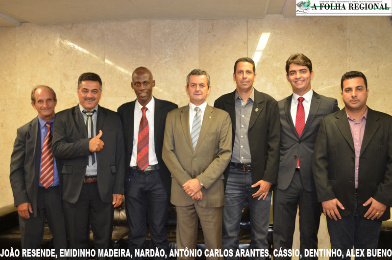 Após anúncio da união dos deputados Antônio Carlos Arantes (PSDB), Cássio Soares (PSD) e Emidinho Madeira (PTdoB) em prol dos municípios da região sudoeste, o presidente da Câmara de Passos, João Resende (PP) e os vereadores Alex Bueno (PSD), Luís Carlos do Souto Júnior (Dentinho - PSDB) e Reinaldo Oliveira (Nardão - PMDB) estiveram reunidos em Belo Horizonte para discutir prioridades e encaminhar reivindicações do município aos deputados.
