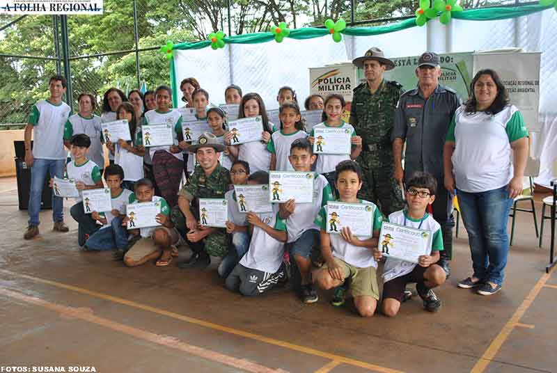 Alunos da Escola Municipal Napoleão Volpe – zona rural de São Sebastião do Paraíso, participaram na segunda-feira, 5, da formatura Programa de Educação Ambiental da Polícia Militar de Minas Gerais (Progea).