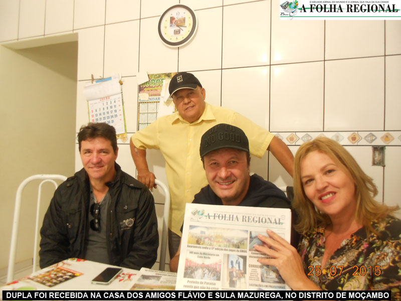 A consagrada dupla sertaneja Chico Rei & Paraná esteve em Muzambinho no sábado, 25/07. Com shows programados na região, os artistas foram recebidos na casa da cantora Sula Mazurega e esposo Flávio, no bairro rural Moçambo, pernoitando e seguindo para show em Andradas no dia seguinte.