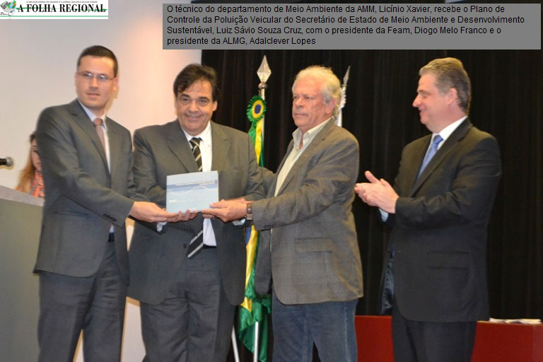 A Associação Mineira de Municípios (AMM) recebeu o Plano de Controle da Poluição Veicular 2014-2017, que desenvolve um dos eixos do Plano de Mobilidade, das mãos do secretário de Estado de Meio Ambiente e Desenvolvimento Sustentável, Luiz Sávio de Souza Cruz, e o presidente da Fundação Estadual do Meio Ambiente (Feam), Diogo Melo Franco, durante o encerramento da Semana do Meio Ambiente 2015.