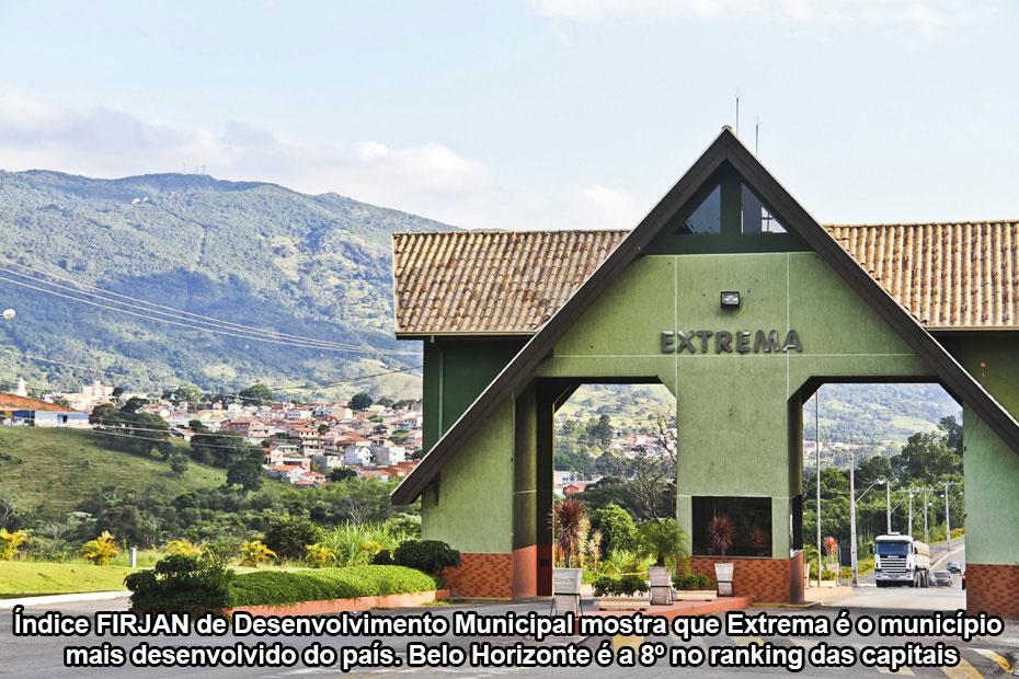 O Índice FIRJAN de Desenvolvimento Municipal (IFDM) 2015, divulgado nesta sexta-feira, dia 4, revela que 84,1% das cidades mineiras têm nível de desenvolvimento alto ou moderado. O estudo destaca ainda que o estado não possui qualquer cidade de baixo desenvolvimento. Além disso, fica em Minas Gerais a cidade com a maior nota do país: Extrema.