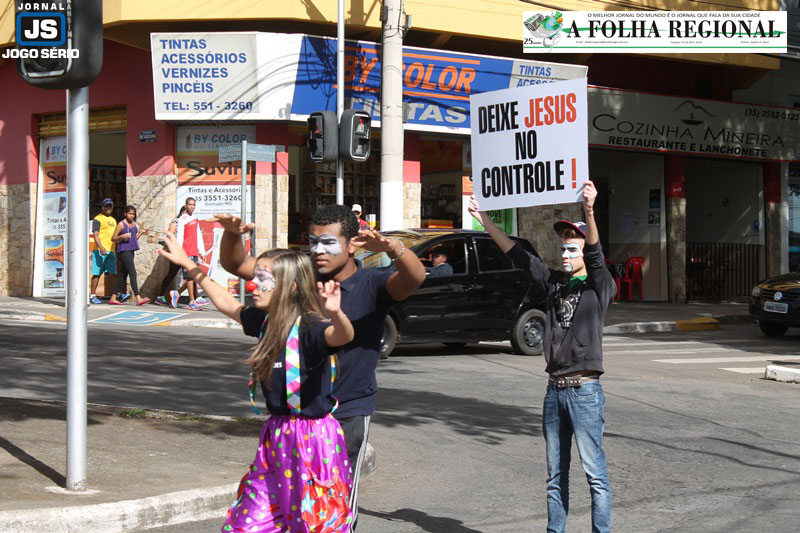 Membros da igreja Ministério Servindo as Nações, dos pastores Sandra e Edson Kilian Bitencourt (Sargento, que é vereador em Guaxupé), realizaram uma ação na Avenida Dona Floriana, na área central da cidade, na manhã de sábado último, 30 de maio, quando comemora-se o Dia Mundial da Evangelização.