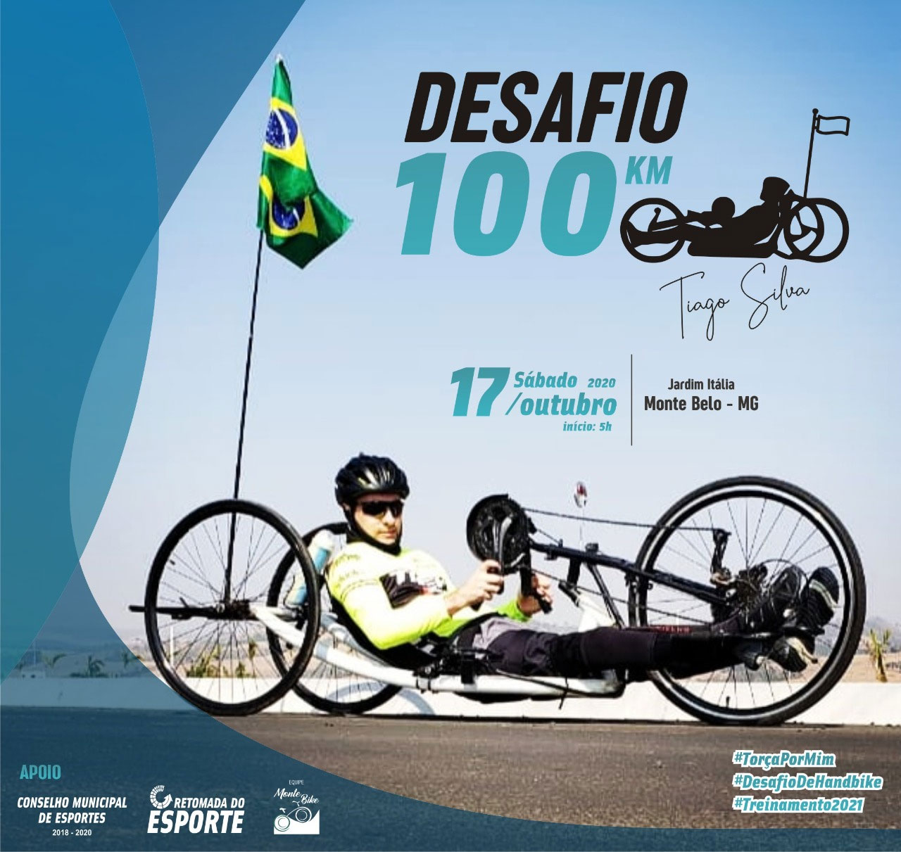 O paraciclista amador, Tiago Silva, tentará realizar o Desafio de 100 KM com a sua handbike. O Desafio acontecerá no sábado, dia 17 de outubro de 2020, em Monte Belo – MG.