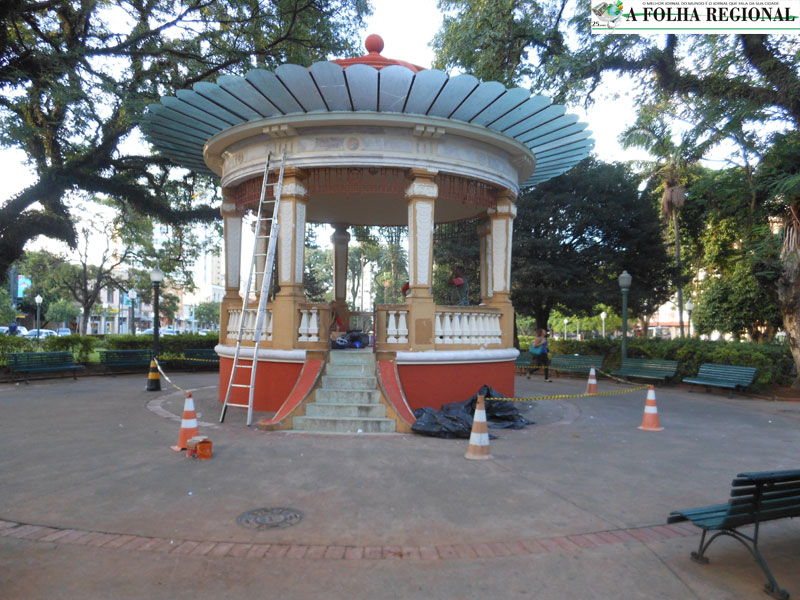 O prefeito de Poços de Caldas Eloísio do Carmo Lourenço e o Secretário Municipal de Turismo e Cultura, Rômulo Vilela fazem a entrega da reforma do Coreto da Praça Pedro Sanches na sexta-feira, 06 de março.
