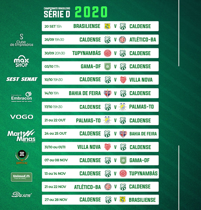 A CBF publicou em seu site oficial no final da noite da segunda-feira a data e o horário da estreia da Caldense na Série D do Campeonato Brasileiro 2020.