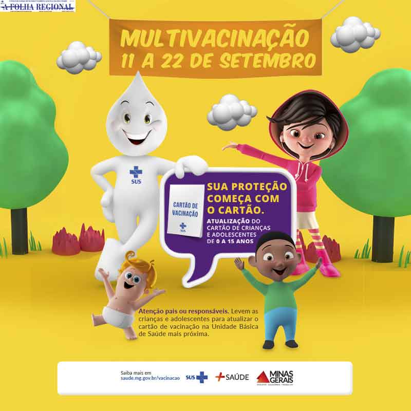 Com o objetivo de atualizar o cartão de vacinação de crianças e jovens com até 15 anos de idade incompletos, continua até a sexta, 22/09, a Campanha Nacional de Multivacinação.
