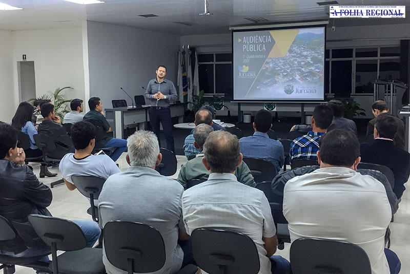 Na terça-feira, dia 30 de maio, ocorreu em Juruaia a Audiência Pública na qual teve como objetivo abordar, de forma resumida, a execução orçamentária e financeira do 1º quadrimestre do exercício de 2017 e também apresentar a execução das metas de arrecadação estabelecidas na LDO, conforme disposto no §4º do art. 9º da Lei de Responsabilidade Fiscal.