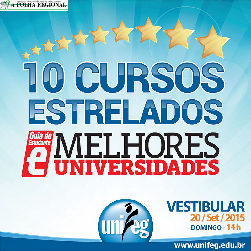 O Unifeg, Centro Universitário da Fundação Educacional Guaxupé, teve 10 de seus cursos estrelados na avaliação de cursos Superiores realizada pelo Guia do Estudante (GE) e constarão, juntamente com os demais Cursos ofertados pela instituição, da publicação Guia do Estudante Profissões Vestibular 2016, que circulará nas bancas a partir de 9 de outubro de 2015.