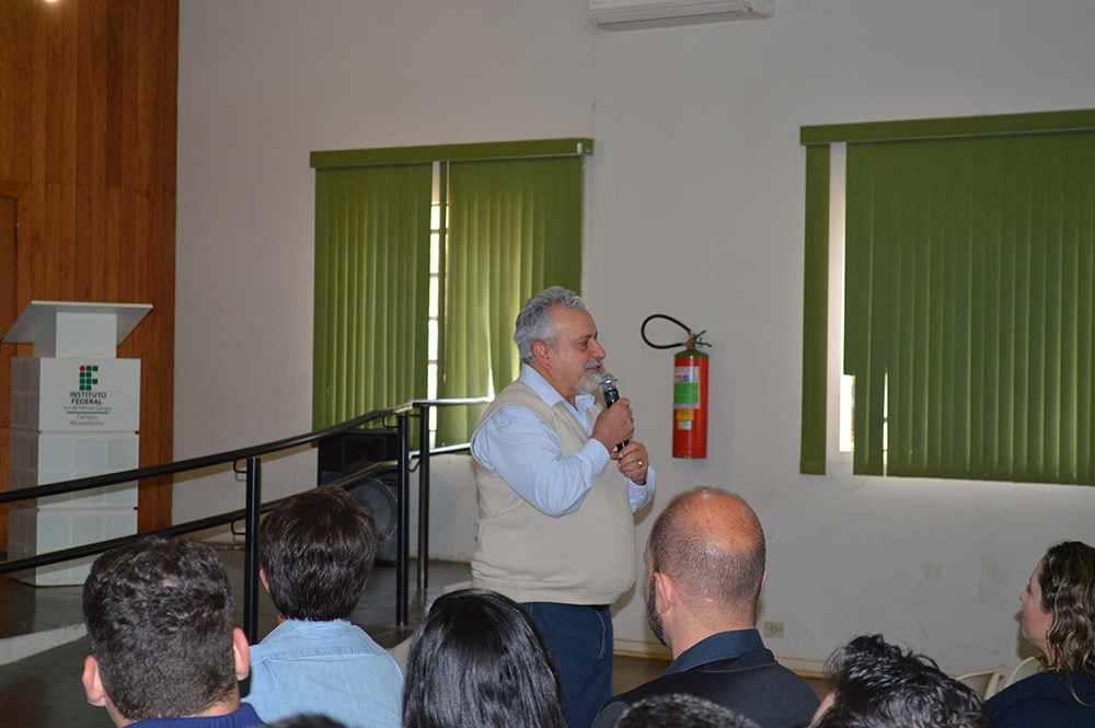 Após o café, os docentes foram para o auditório onde foram recepcionados pelo Reitor do IFSULDEMINAS, Marcelo Bregagnoli, pelo Diretor-geral, Luiz Carlos Machado Rodrigues, pela Diretora de Desenvolvimento Educacional, Luciana Maria Vieira Lopes Mendonça e pelo Diretor de Administração e Planejamento, Carlos Guida Anderson que deram boas-vindas aos professores e debateram com os presentes questões internas relativas ao andamento do próximo semestre.