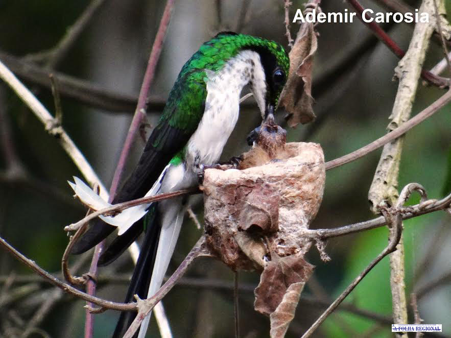 Em 2016, Ademir Carosia iniciou um levantamento de locais de ninhos de beija-flores na área urbana, rural e residências. Encontrou ninhos isolados, debaixo de uma ponte, e outros mais familiarizados com os moradores. Em uma planta de vaso, próximo à porta de entrada de uma casa no Centro da cidade, uma besourinha-de-bico-vermelho (Chlorostilbon lucidus) criou dois filhotes. O ambientalista orienta: “Se não forem molestados, eles irão retornar sempre ao mesmo ninho”.