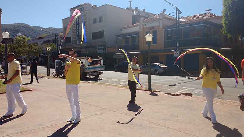 Um grupo de pessoas vestidas de amarelo chamou a atenção de quem passou pela praça Pedro Sanches na manhã da segunda-feira (11). A cor escolhida é em alusão ao Setembro Amarelo, mês de prevenção ao suicídio. Panfletagem com informativos sobre o assunto, o "cesto da verdade" com frases para reflexão e uma encenação lúdica reproduzindo a metamorfose vivida pela lagarta até se transformar em borboleta, fizeram parte da programação.