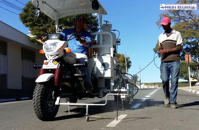 Nesta semana a Prefeitura de Guaxupé apresentou o novo equipamento que fará a sinalização de toda via pública, como faixas contínuas, pontilhadas, faixas de pedestres e meio fio. Antes, o trabalho que era realizado em duas horas, agora será feito em apenas 10 minutos. O triciclo operado por três servidores da Secretaria Municipal de Obras trará melhor rendimento dos trabalhos e economia considerável de material.